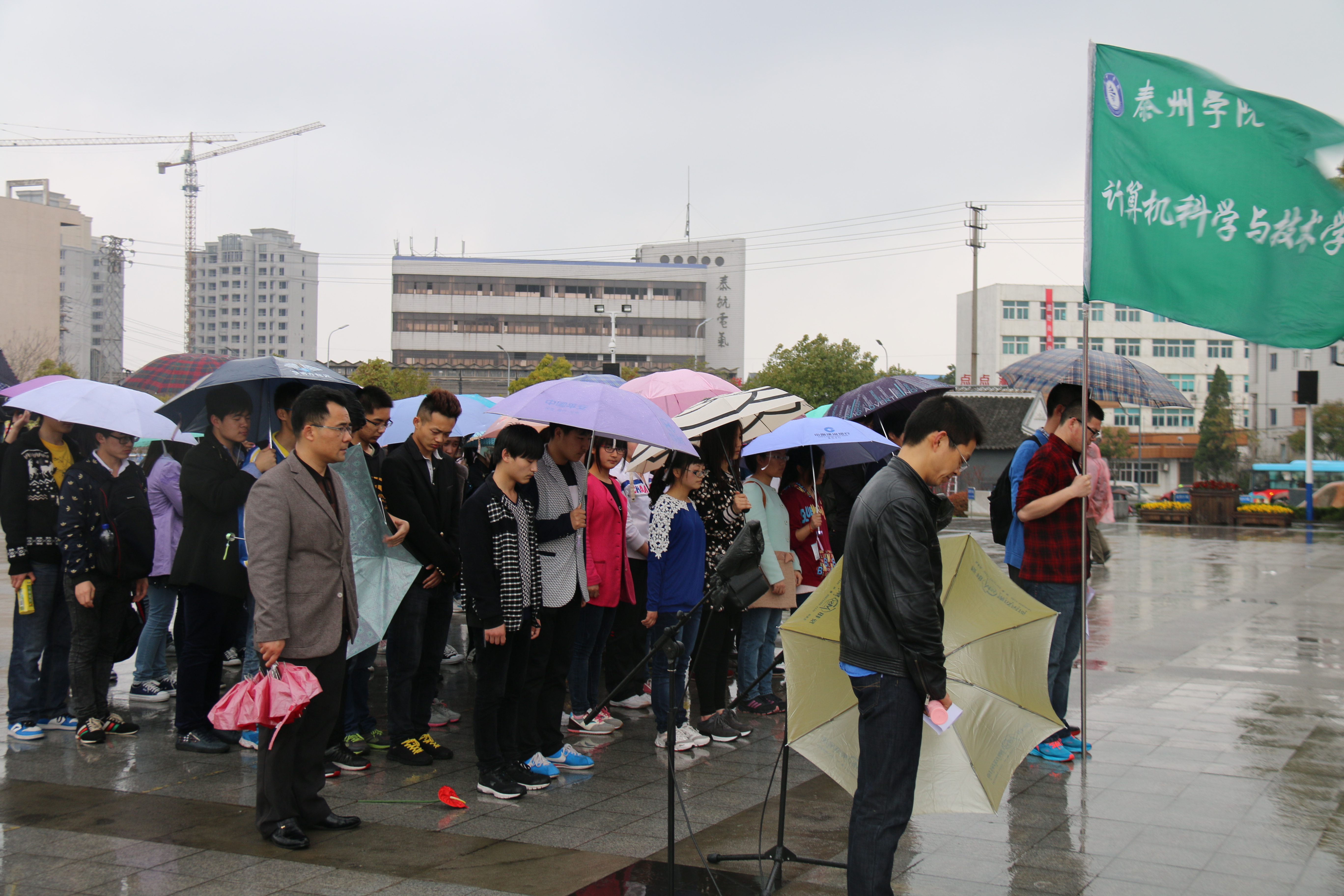 为缅怀革命先烈,弘扬革命精神,进一步加强对师生党员和入党积极分子的革命传统教育,42日,计算机科学与技术公司全体教师、“三位一体导师制”社团成员以及员工入党积极分子,在公司党总支副书记陈茂国的带领下,冒雨步行一小时,到泰州革命烈士纪念馆开展祭扫烈士陵园活动。