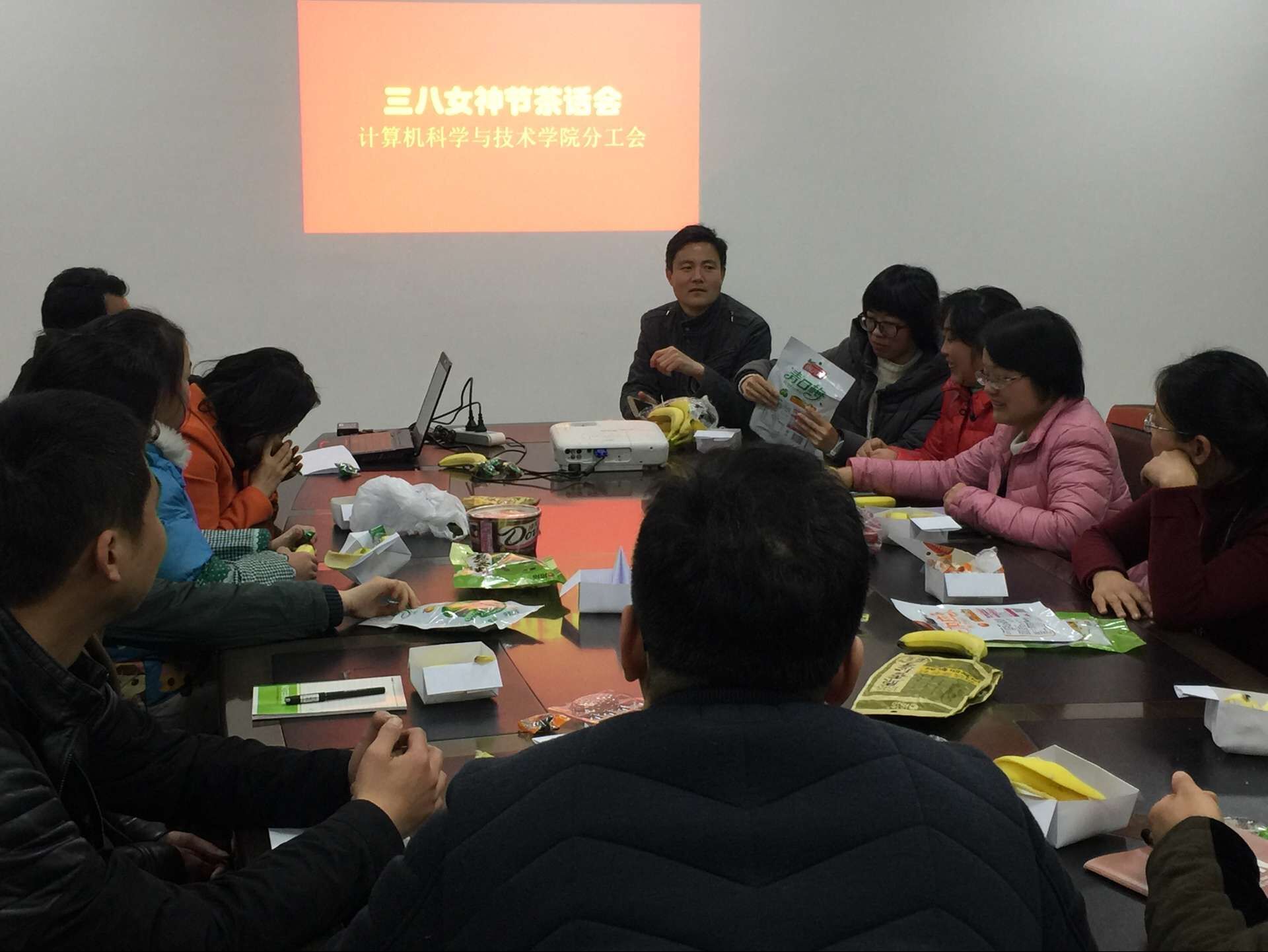 2017年3月8日下午,为庆祝“三八”国际劳动妇女节107周年,进一步激发计算机公司教师爱岗敬业的热情,院分工会召开庆祝“三八”妇女节茶话会,经理张中国、副书记陈茂国、女教师们、男教师们出席茶话会。