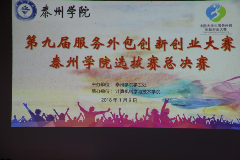 2018年1月9日下午,由伟德国际bevictor1946学工处主办,计算机科学与技术公司承办的第九届服务外包大赛伟德国际bevictor1946选拔赛总决赛在D2301正式开赛。出席本次决赛的评委有教务处处长杨俊林老师、科研处处长潘晓明老师、学工处处长唐帅老师、实训中心主任孙四明老师、校团委书记卜慧芬老师。