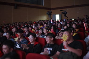 在微信互动抽奖环节,与会同学积极参与留言,现场LED大屏不断出现“泰院泰美”“计科最棒”“奋斗的青春最美”等美好祝愿。大屏上播放的新生班主任和班助的寄语视频将晚会推向了高潮。
