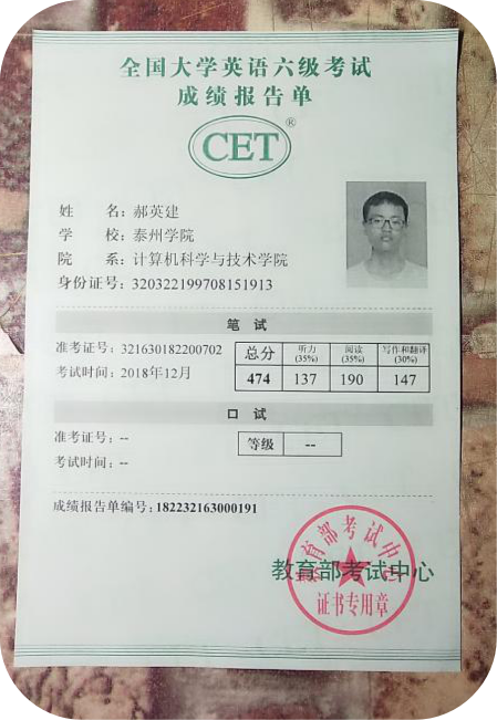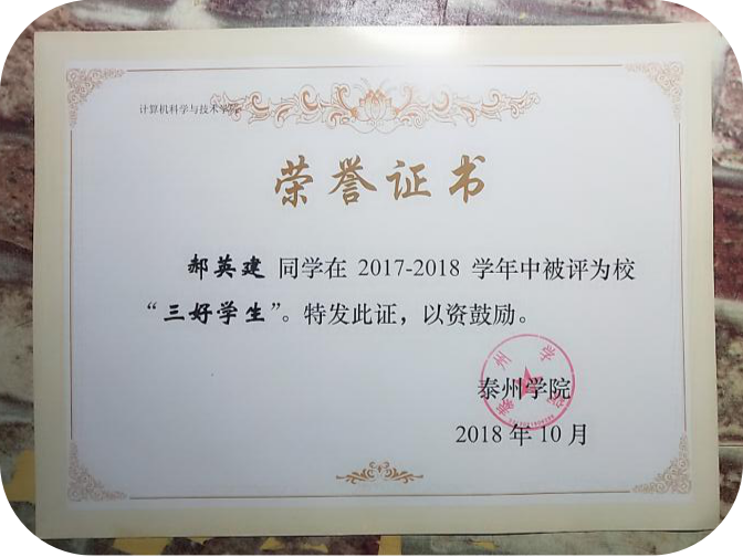 郝英建,男,汉族,江苏省徐州人,现就读于伟德国际bevictor1946计算机科学与技术公司,现任17计算机(苏软嵌入)班治保委员。