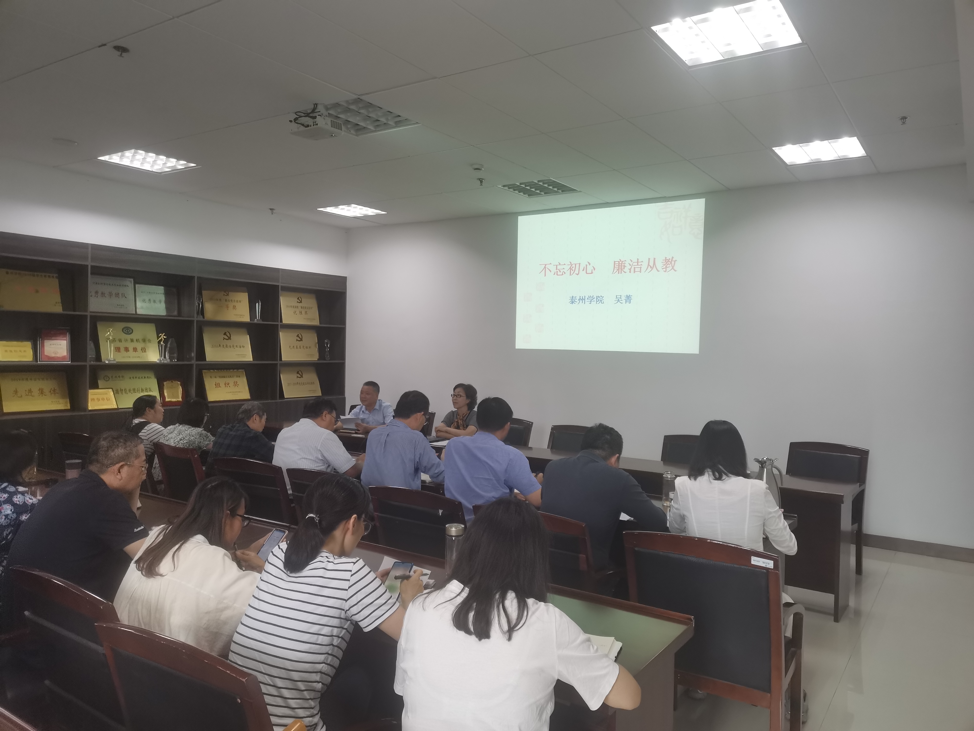 9月23日下午,公司党委常委、纪委书记吴菁在计算机科学与技术公司会议室D2307,为公司全体教职工作“不忘初心 廉洁从教”主题报告,报告由公司党总支书记董学森主持。