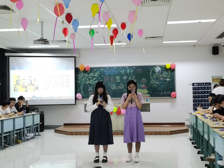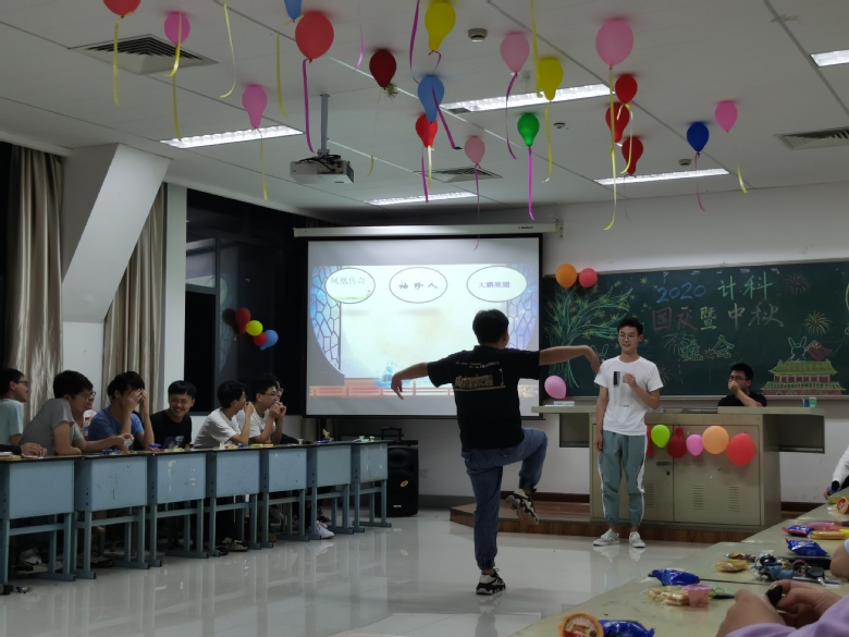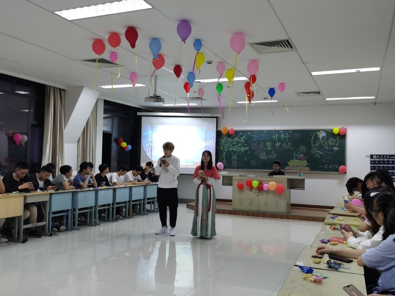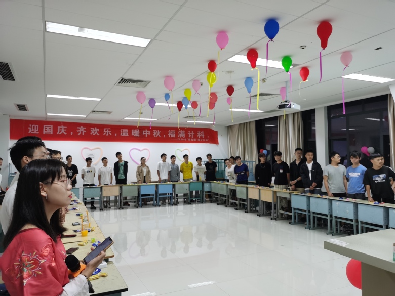 为庆祝中秋、国庆双节来临,丰富同学们的在校生活,10月1日晚,计算机科学与技术公司在教学楼3201举办了“迎国庆,齐欢乐,温暖中秋,福满计科。”联欢会活动。计科院辅导员老师和留校的部分贫困员工以及员工代表共同参加了本次活动。