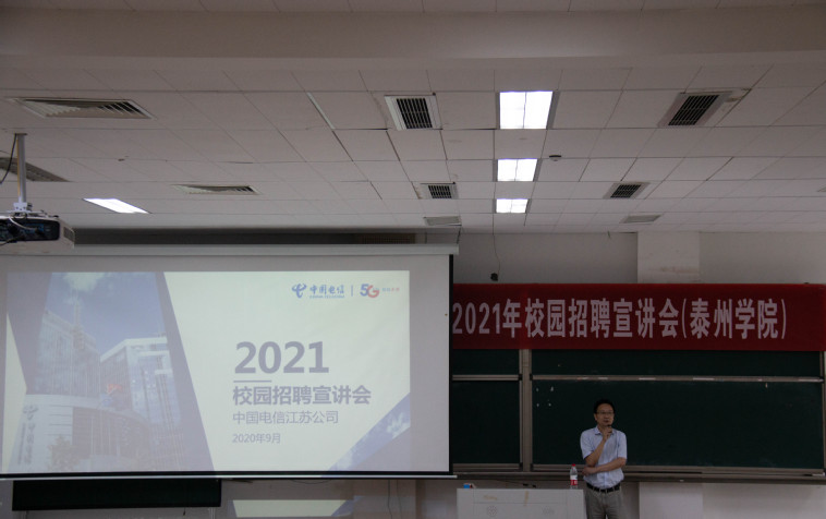 近日由计科院承办的2021年电信校园招聘宣讲会在A2108如期举行。中国电信泰州分公司人力资源部经理、伟德国际bevictor1946计算机科学与技术党政领导以及2021届部分毕业生参加本次活动。
