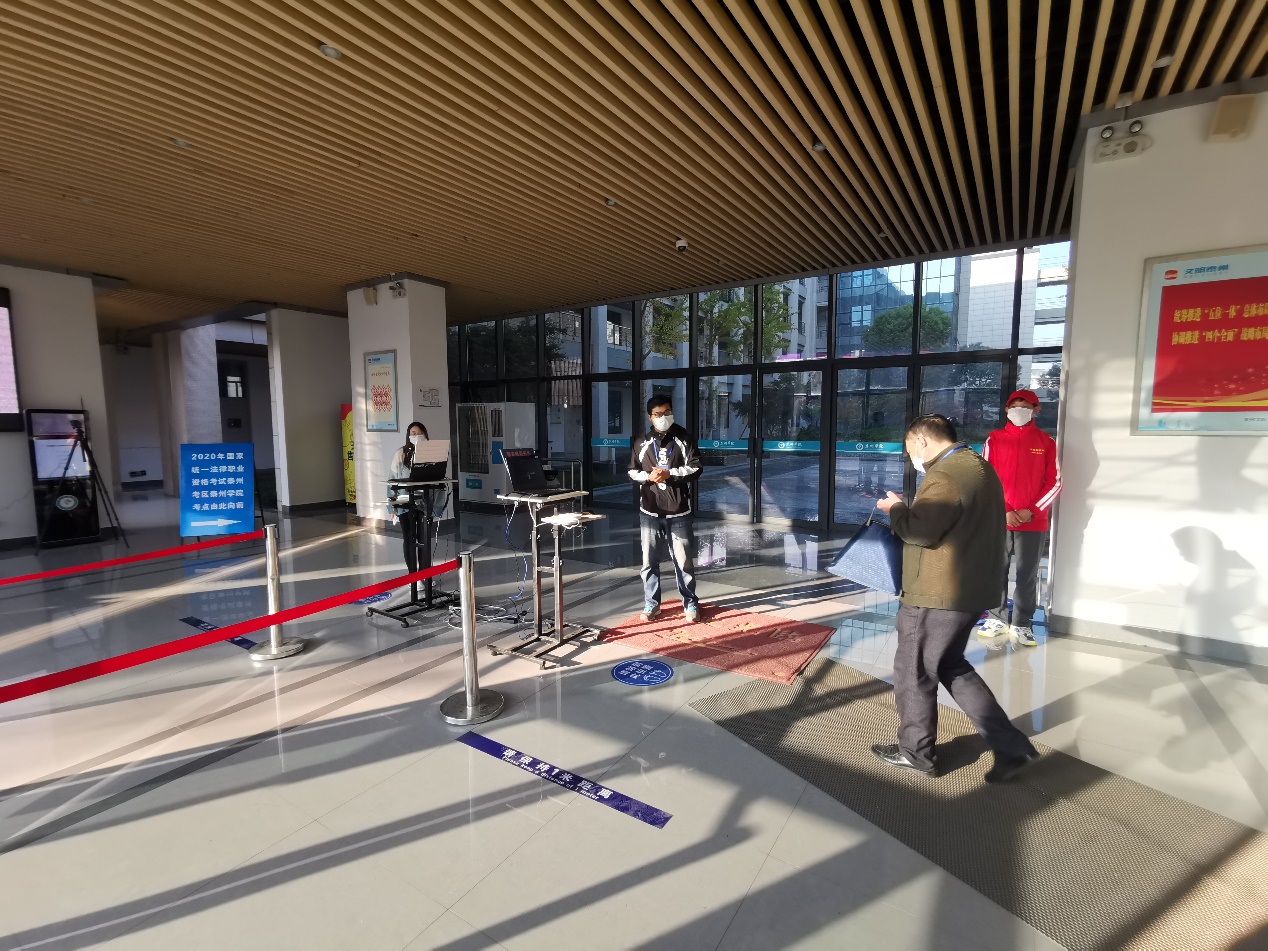考试前,考点负责人袁建华介绍了国家统一法律职业资格考试(泰州考区伟德国际bevictor1946考点)考务工作准备情况,汇报了前一阶段本考点在防疫安全、供电测试、网络监管、网络压力测试、网络安全检测等各方面的保障措施,并宣布了制定的疫情防控紧急预案。周福莲同志对考务准备工作表示了肯定,并详细了解了监考人员的工作职责、工作流程,她希望每一名工作人员都熟练掌握国家统一法律职业资格考试考务工作规定和操作流程,将工作做实、做细,确保考试顺利进行。孔德峰同志重点检查了防疫情况,仔细询问了隔离考场的物资准备,他表示,防疫弦不能松,预防无症状感染者带来的风险,强化责任意识,切不可大意。