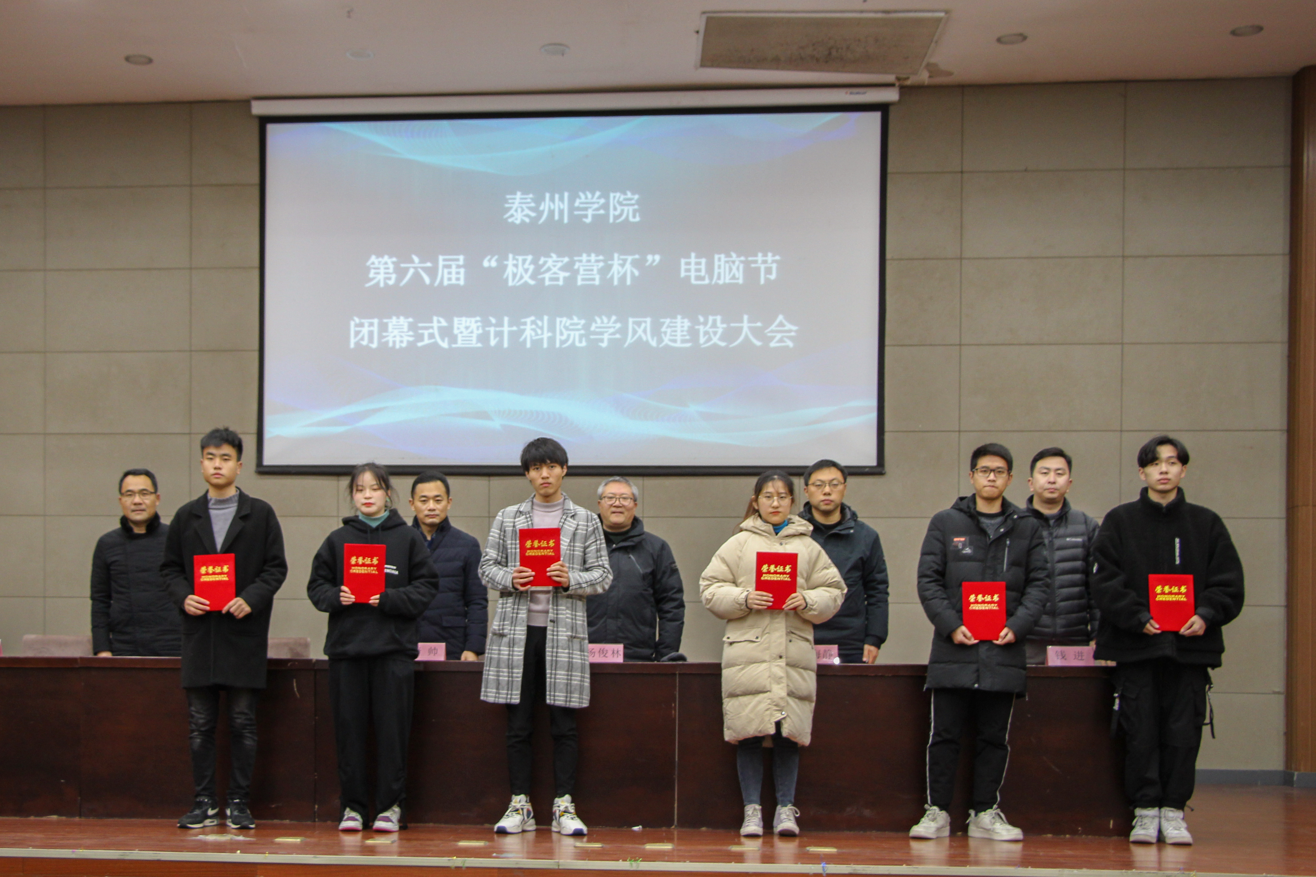 12月29日晚,伟德国际bevictor1946第六届“极客营杯”电脑节闭幕式暨计科院学风建设大会在图书馆负一楼举行。教务处、学工处、团委、计科院相关负责人,电脑节各项比赛的获奖选手,计科院部分员工代表参加了此次活动。