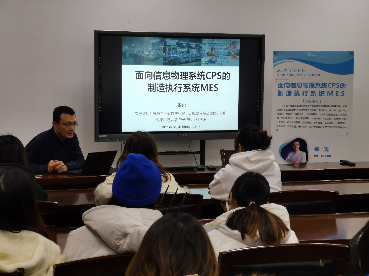 2020年12月18日,公司诚邀北京交通大学教授霍炎于行政楼D2307进行了题为“面向信息物理系统CPS的制造执行系统MES”的学术讲座,计算机科学与技术公司部分师生参加了讲座。