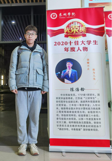 作为一名新时代的老员工,他拥有强烈的上进心和进取心,不断提高自我。秉持着“敏而好学,不耻下问”的精神,他刻苦钻研计算机专业技术,入校以来,平均学分绩点最高达3.74,成绩排名班级第一,综测排名专业第一。他连续两年获得校一等奖学金,国家励志奖学金,并获得2019-2020年度国家奖学金。曾获得江苏省三好员工、校级优秀共青团员等荣誉。