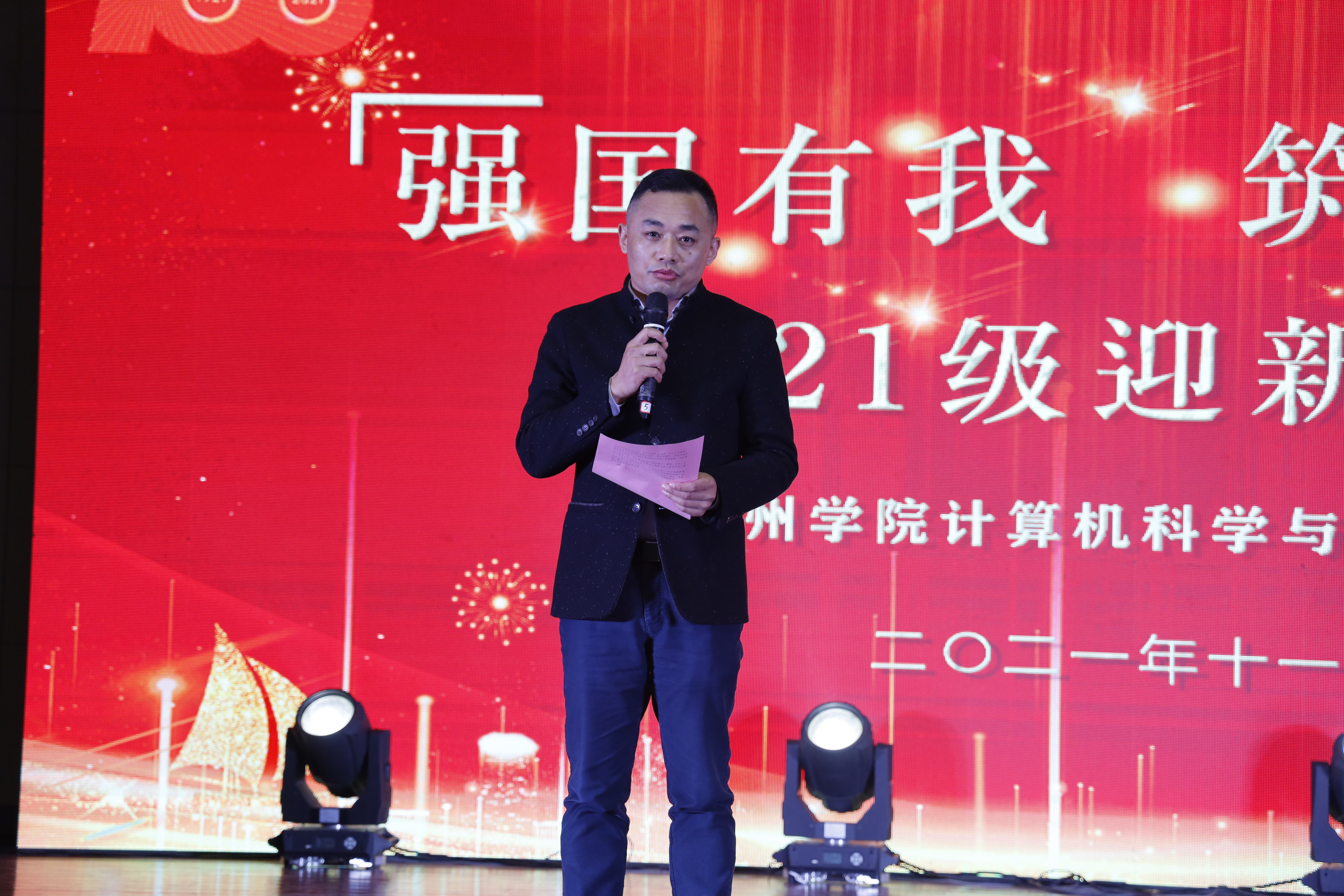 11月22日晚,计算机科学与技术公司“强国有我,筑梦起航”2021级迎新晚会在图书馆负一楼拉开帷幕。校教务处、校学工处相关负责人、计科公司党政负责人、2021级全体员工及各院系师生代表400余人参加了本次活动。计科公司党总支书记唐帅致辞。