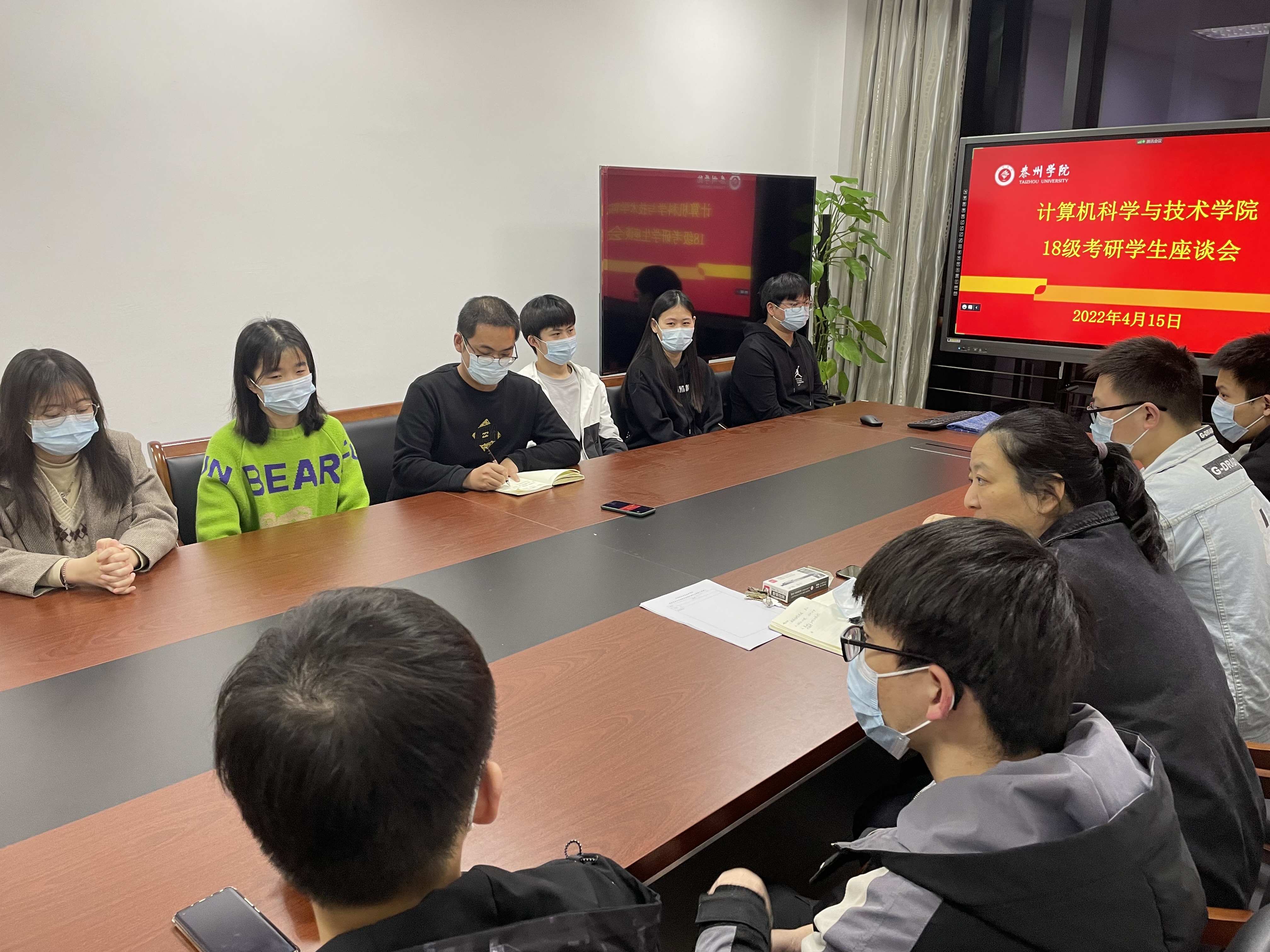 4月15日晚,计算机科学与技术公司召开18级考研员工座谈会。会议采用线上线下相结合的方式,党总支副书记栾吉、副经理钱进、副经理徐艳、辅导员朱敏浩,以及2022届部分考研同学参加会议。