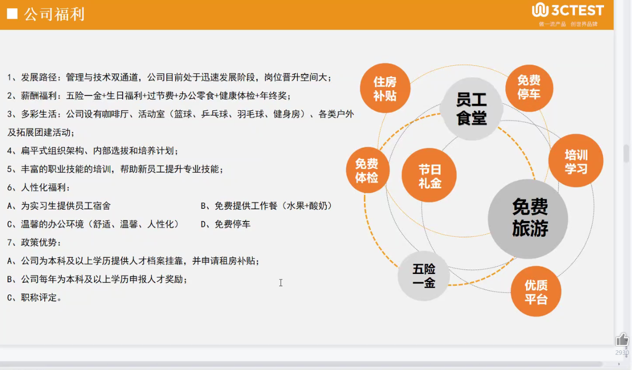 会议伊始,苏州泰思特电子科技有限公司人事经理介绍了公司、发展平台及福利、岗位需求以及应聘方式4个方面的内容;尚远科技(中国)有限公司人事经理介绍了公司、服务网点、产品布局、发展历程、部分产品等多个方面内容,应员工要求,采用视频的方式,展示了公司的工作环境以及部分精密设备。会议最后,两位经理都对同学们提出的一系列问题进行线上答疑。