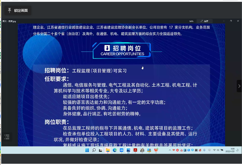 为了搭建毕业生与企业沟通的桥梁,4月21日下午,计算机科学与技术公司在线上举行2022届毕业生“职等你来”中邮通建设咨询有限公司、凌志软件股份有限公司2022年春季就业招聘会。