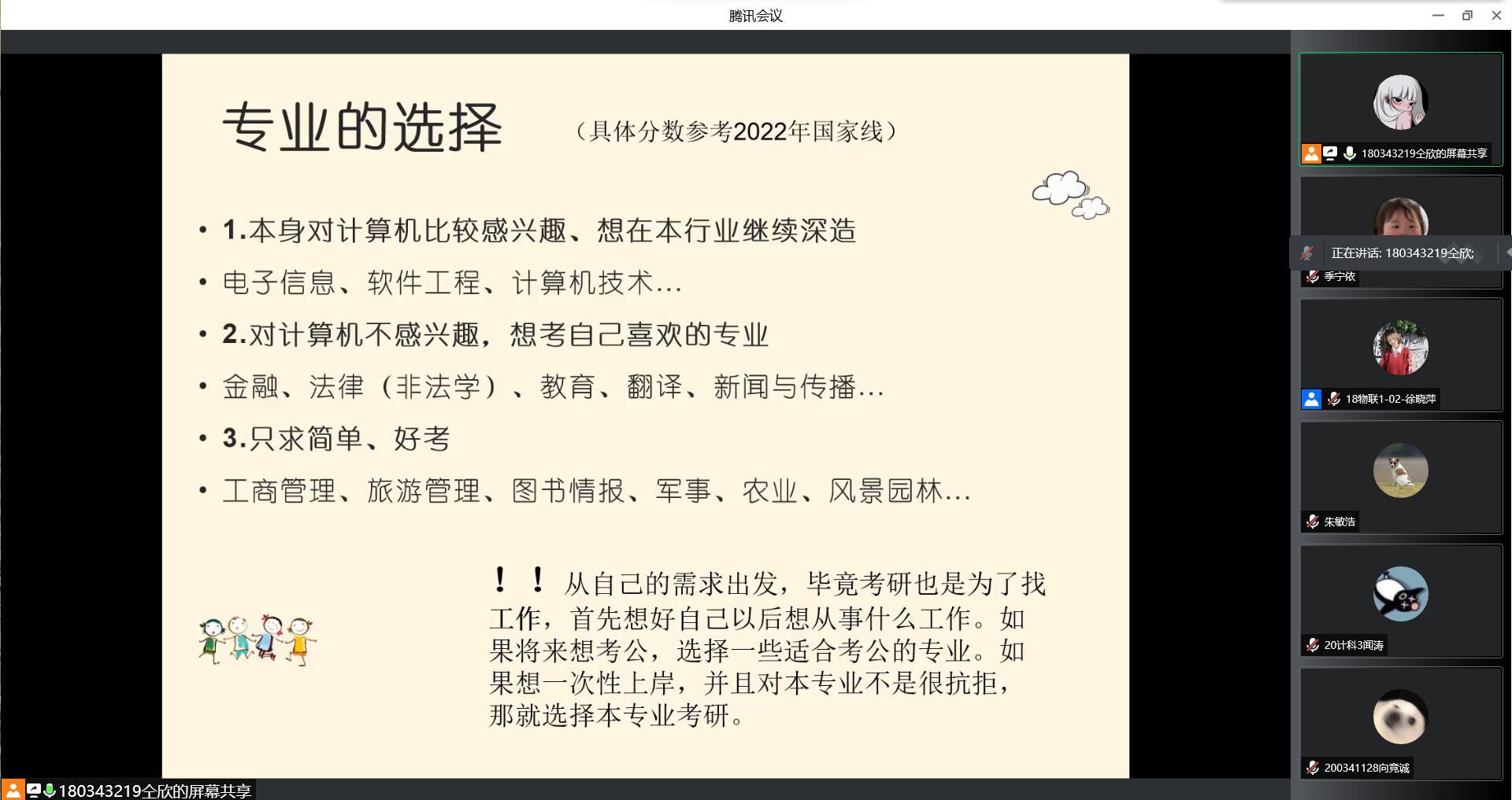 为进一步提高同学们的考研热情,明确考研目标,掌握相关考研技巧。计科院于4月20日晚19:30在线上举办了老员工讲坛。