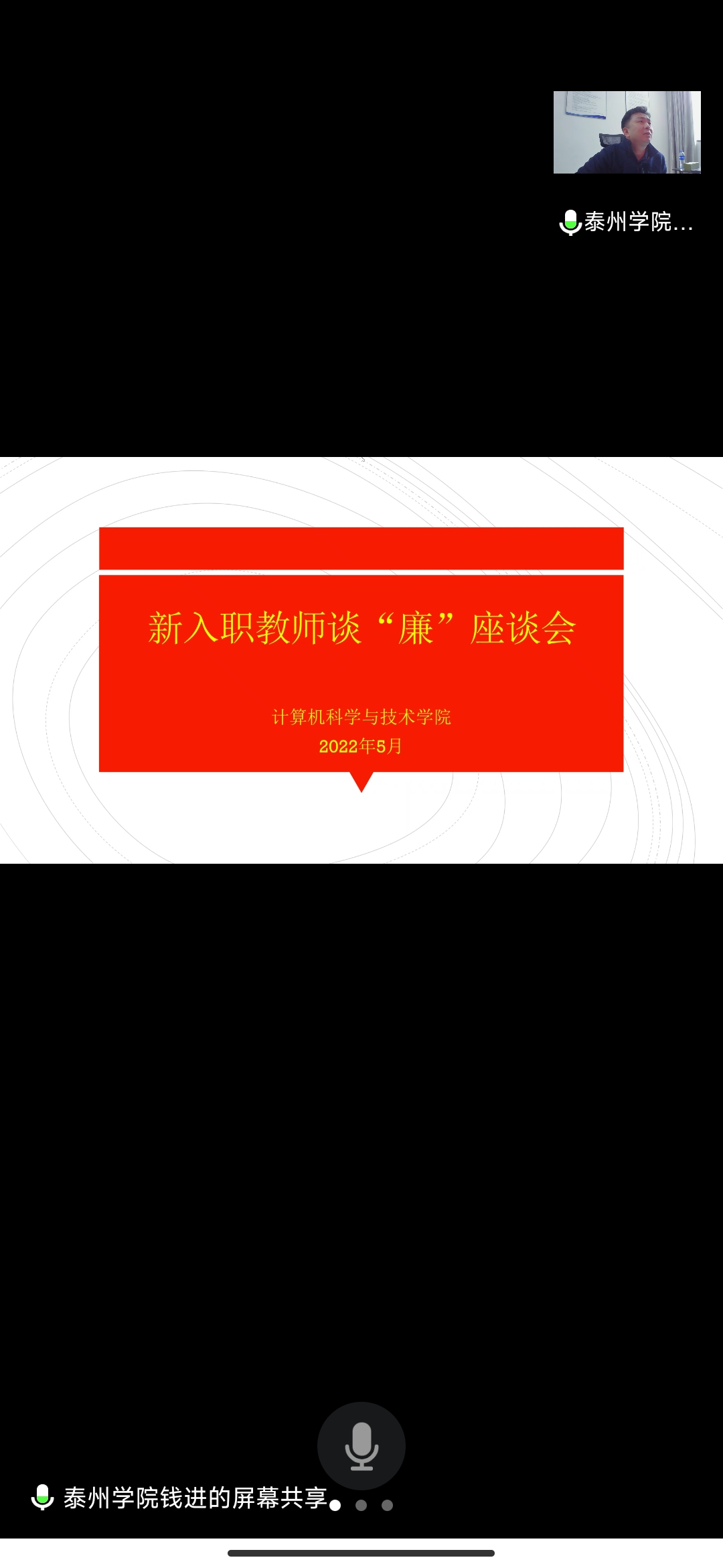 为了让新入职教师进一步明确岗位要求,增强遵规守纪意识,5月9日下午,计科院举行了新入职教师谈“廉”座谈会,公司党总支成员、领导班子成员和2021年新入职教师参加了会议。会议由公司党总支纪检委员钱进主持。