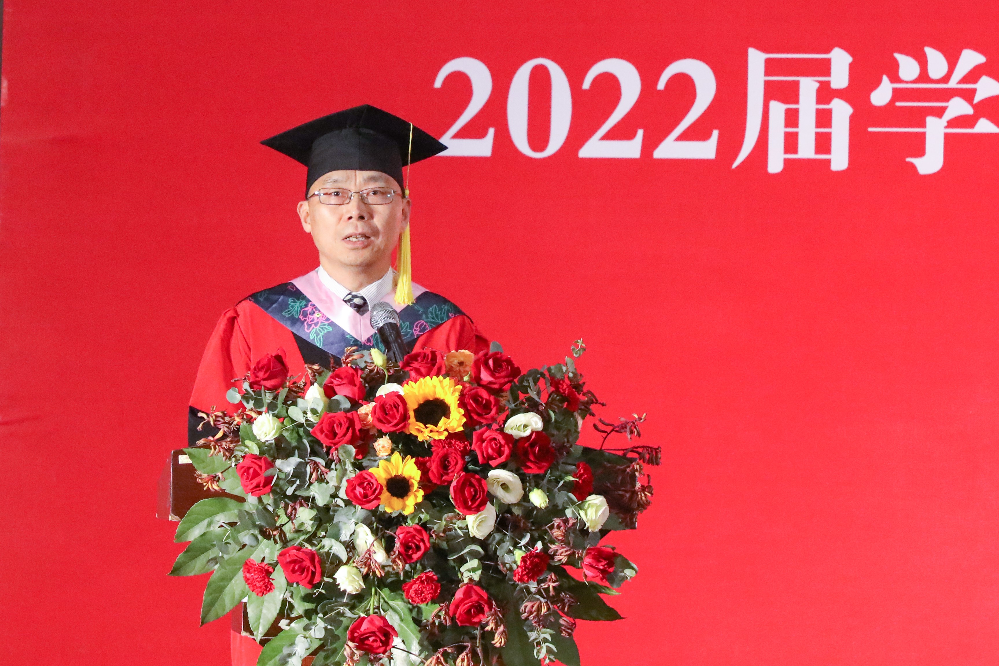 典礼在庄严的国歌声中拉开帷幕。鲁学军发表了题为《在青春赛道上奋力奔跑》的讲话。他代表全体校领导、全校师生向圆满完成学业的242名毕业生们表示了热烈的祝贺;诚挚感谢同学们以“泰院人”的使命担当投身公司和公司的大事要事,以“青年人”的朝气蓬勃为公司增添了生机和活力。他希望同学们牢记习近平总书记对新时代中国青年的嘱托,在青春的赛道上奋力奔跑,并提出四点期望:一是坚定理想信念,树立远大理想,找准奔跑的方向;二是主动担当作为,投身强国伟业,融入奔跑的洪流;三是乐于吃苦耐劳,磨砺意志品格,坚定奔跑的信念;四是保持平和心态,创造幸福生活,迈实奔跑的脚步。