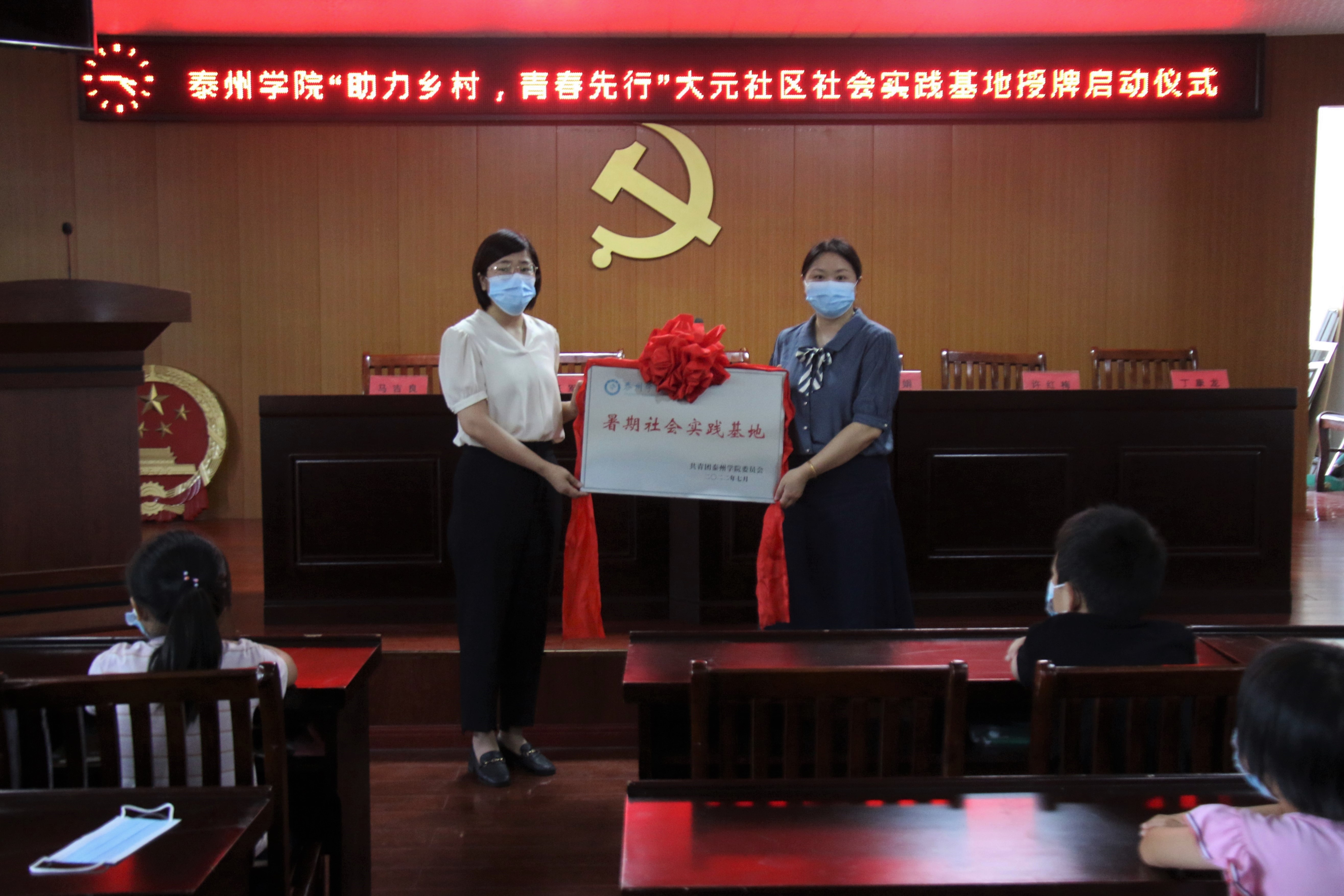 最后,戴文娟和徐艳共同为大元社区暑期社会实践基地授牌。