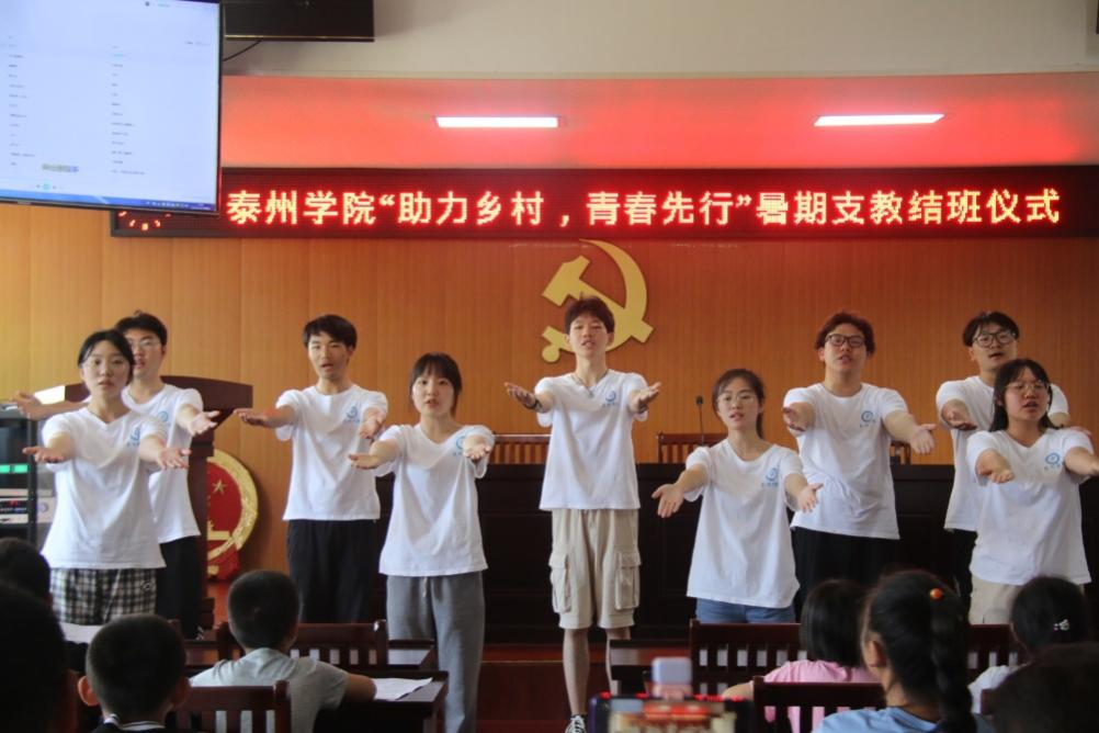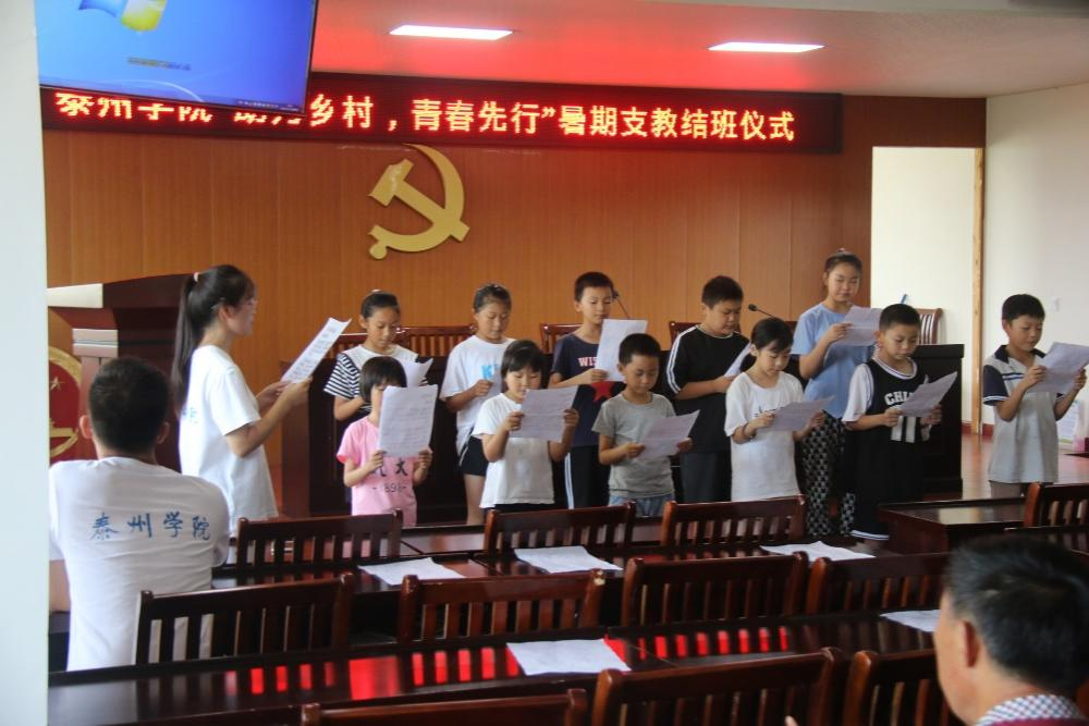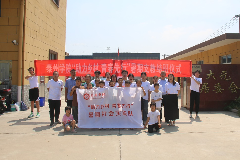 7月29日上午,伟德国际bevictor1946“助力乡村 青春先行”暑期支教团队在泰兴市元竹镇大元社区居委会成功举办了结班仪式。泰兴市教育局督导室副主任蒋跃军、元竹镇大元居委会党总支书记丁康龙、暑期社会实践团队师生及支教班员工共同参加了此次结班仪式。
