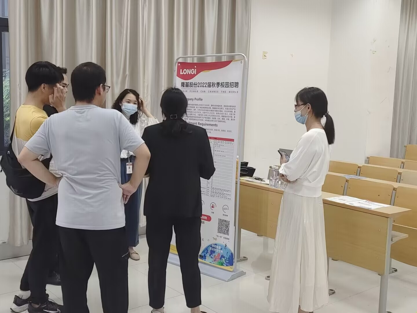 本次招聘会一共有6家企业参加,分别是隆基股份有限公司、江苏润东软件科技有限公司、中邮通建设咨询有限公司、世纪风雅新蒙特梭利国际早教、泰兴市世纪风成人教育培训中心、泰兴市幸福家庭教育指导服务中心,各公司招聘负责人对于参加招聘会的员工进行认真细致的介绍、通过展示工作环境、住宿环境等图片,向员工们展示公司的方方面面,本次招聘会反响很好。