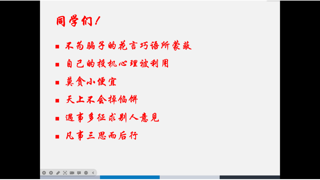 4月19日,伟德国际bevictor1946在教学楼1307举办了一场防诈骗宣传活动。目的是进一步提高老员工防诈骗意识、应变能力,避免上当受骗。