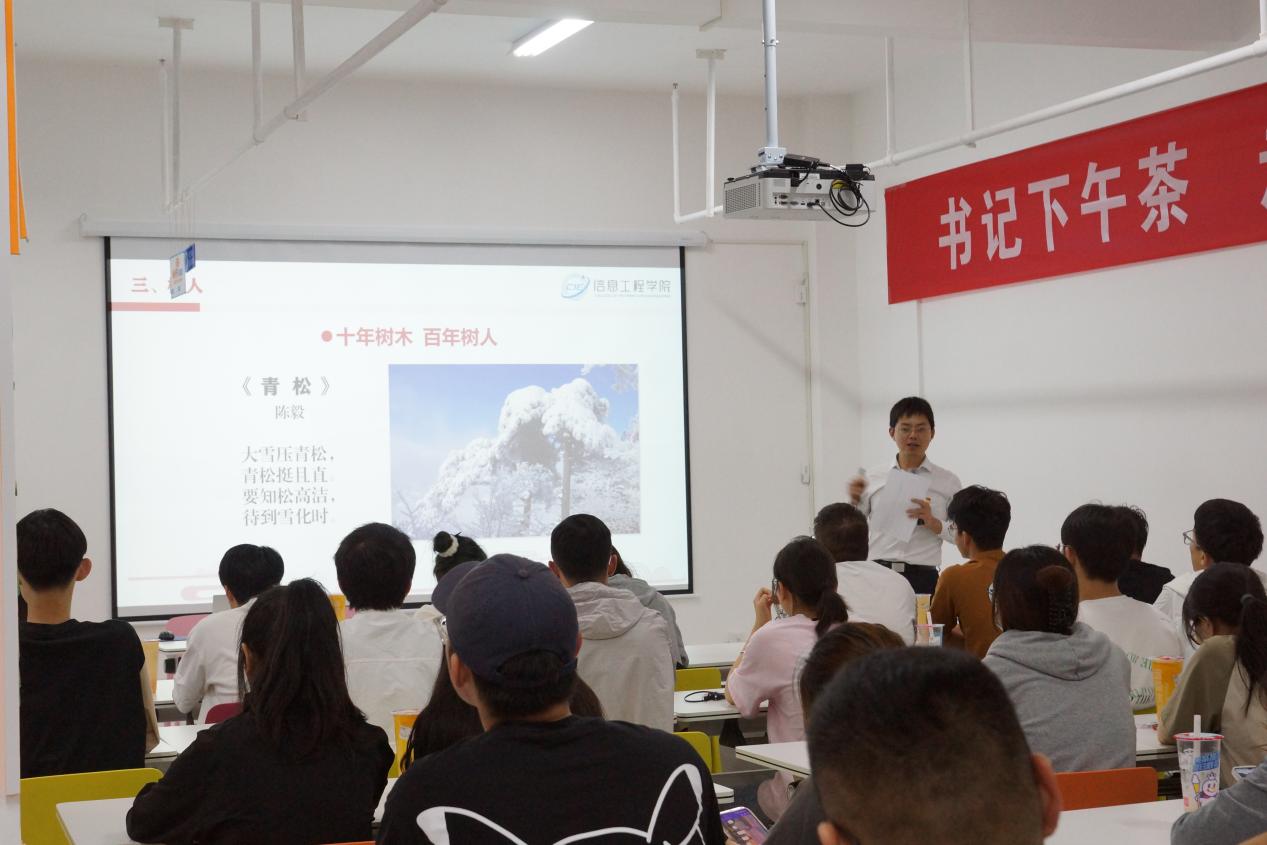 活动中,公司党总支书记朱诚以树木、树林、树人为主题,对应班级、公司、个人发展,从为什么种植班树,如何种好班树;为什么种植院林,如何护好院林;如何成人成才和员工干部如何履职尽责等六个角度与同学们畅谈如何建设更好的班级和成为更好的自己。谈到“树木”时,提出班树象征着团结、青春和精神。谈到“树林”时,提出院林是团结、奋斗和创新之林;同时希望青年学子自信自强,矢志成才;希望全体老师学高身正,倾心育才;希望信工院守正创新,造就英才。谈到“树人”时,提出成才需要客观和主观因素,通过“强根、健干、育枝、护叶”构建学习共同体、成长共同体、命运共同体;同时强调员工干部只有准确把握包括“六个必须坚持”在内的习近平新时代中国特色社会主义思想的立场观点方法,才能更好地履职尽责。最后,朱诚祝愿班级、公司和个人发展越来越好。