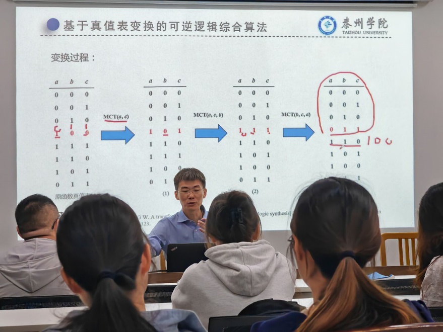 最后,伟德国际bevictor1946教师,博士,副教授朱鹏程博士带来了题为“面向NISQ架构的可逆逻辑线路变换”的讲座。朱博士详细阐述了可逆逻辑线路变换在NISQ架构下的研究进展,以及其在量子计算领域的重要应用价值。