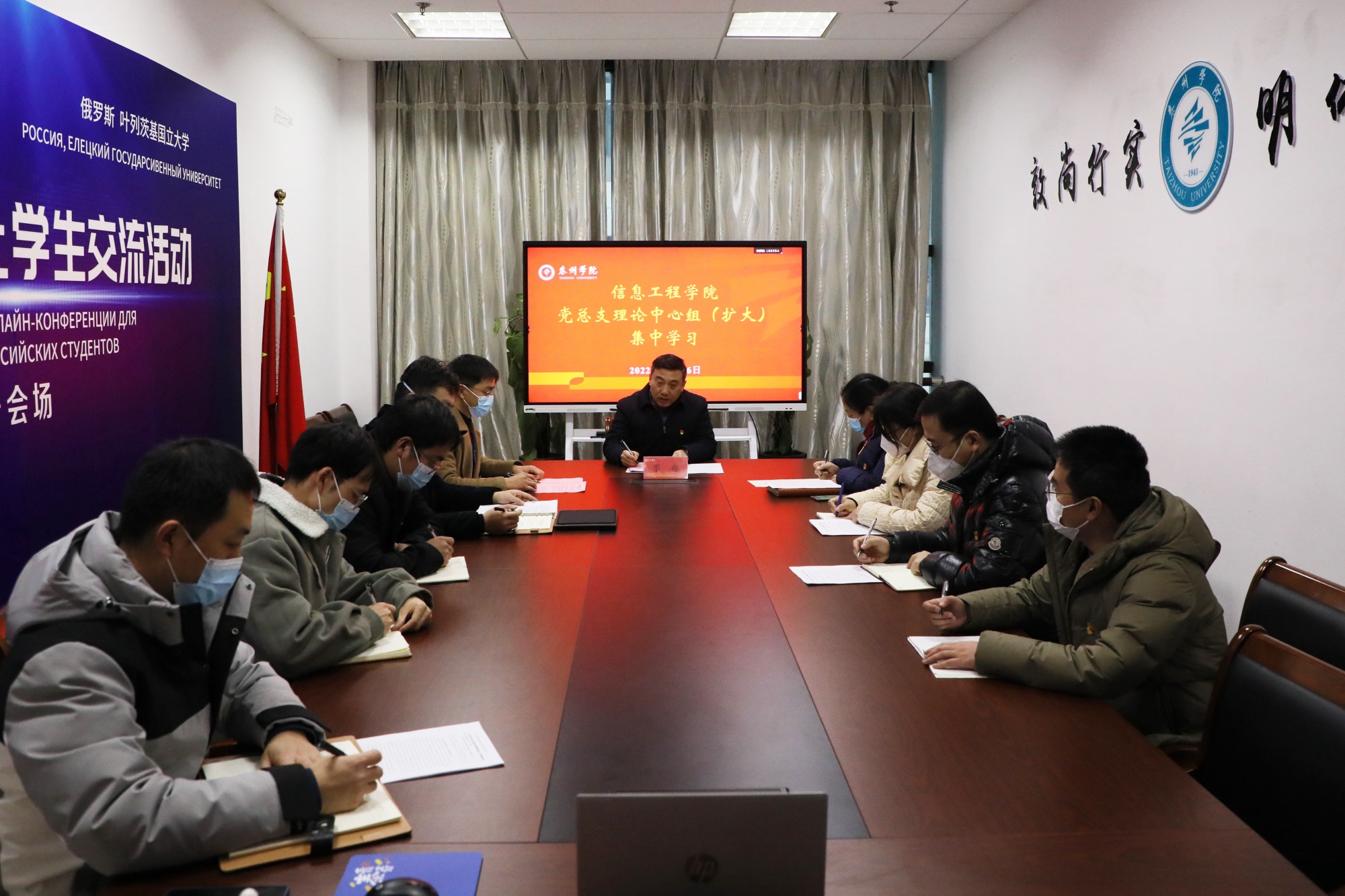 12月16日下午,公司党委副书记、董事长季赛在D2321会议室巡学旁听公司党总支理论学习中心组集中学习党的二十大精神。公司党总支书记朱诚主持会议,公司党总支理论学习中心组全体成员、科级以上人员和辅导员等参加学习。