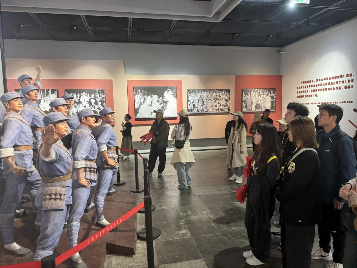 走入纪念馆,叶飞题词、夏光事迹、春来茶馆……一幕幕历史情境还原于眼前。师生们通过珍贵文物、历史照片、详实解说,细细感受阿庆嫂等人民群众与敌人斗智斗勇、冲破险阻、转移伤员的紧张场景,深入了解沙家浜厚重的革命文化,重温沙家浜军民鱼水情深,共同抗敌的感人事迹。22级计科3班团支书付薇说:“回顾往昔,党和人民始终站在一起,同呼吸、共命运、心连心,才能实现如今的美好生活。作为一名员工预备党员,我定传承红色基因,学党史、强信念、跟党走,为中国特色社会主义现代化建设贡献自己的青春力量。”