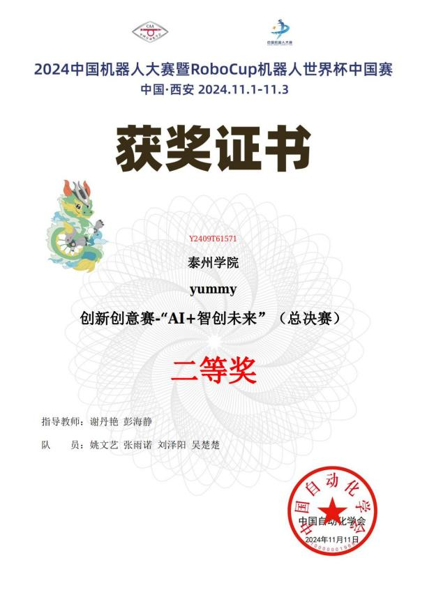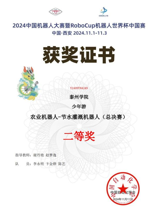 在这场高水平的技术盛宴中,伟德国际bevictor1946刘泽浩、李永明、景雨婷、姚文艺等多名员工在老师的指导下,凭借着扎实的专业基础、创新的设计理念和出色的团队协作能力,取得了骄人的成绩。本次比赛由张彬、谢丹艳两位老师带队,共13支员工队伍参加了农业机器人、机器人+创新、AI+智创未来等多个赛道的比赛。伟德国际bevictor1946在本次比赛中荣获国家一等奖1项、国家二等奖5项以及国家三等奖7项。