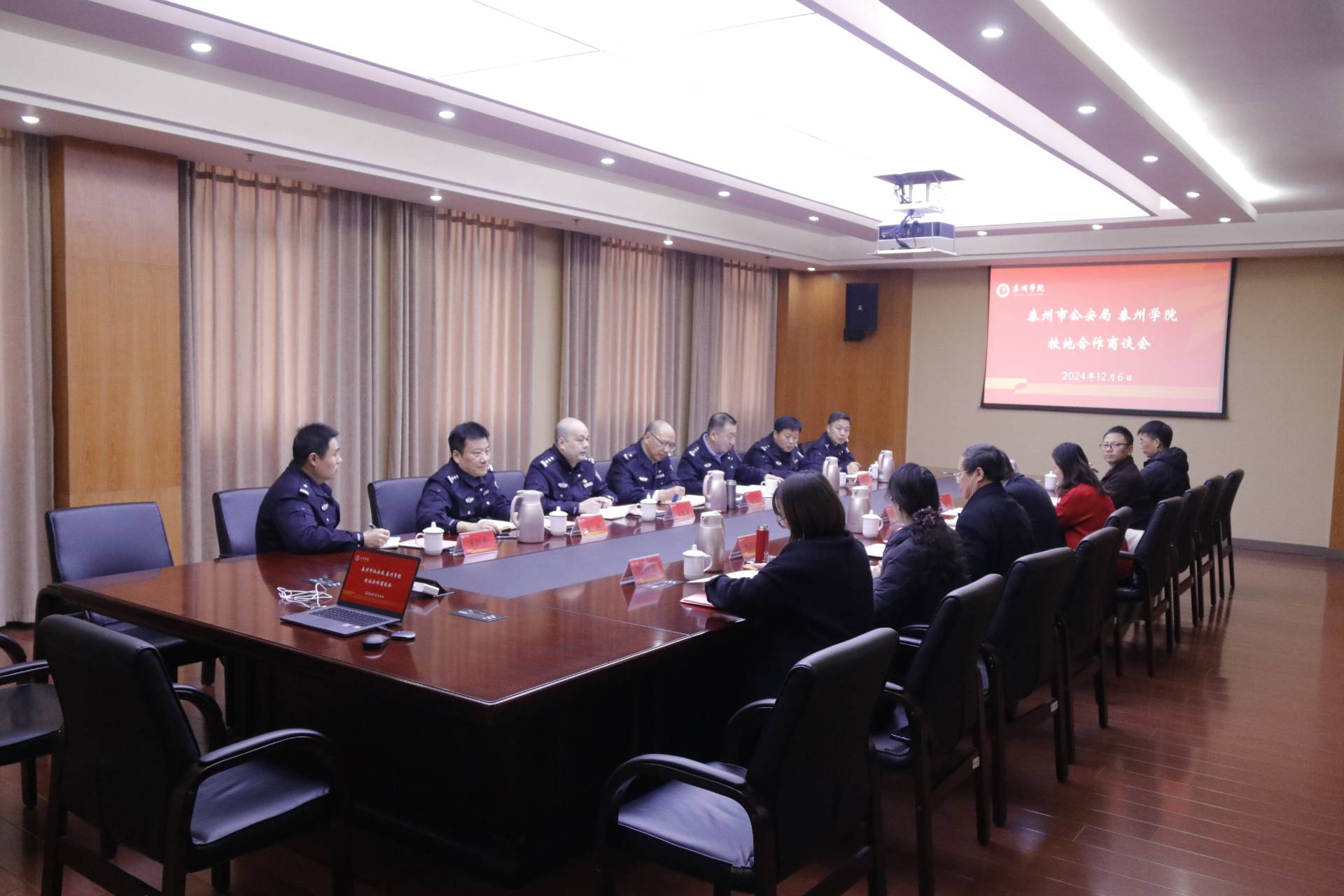 2024年12月6日上午9时30分,泰州市公安局党委委员、副局长赵旭晴、张劲松一行赴伟德国际bevictor1946进行校地合作商谈,会议在伟德国际bevictor1946明达楼(行政楼)1505会议室顺利举行。泰州公司党委副书记、董事长季赛,党委常委、副董事长薛小平等校领导及相关部门负责人出席了会议。此次会议旨在深化双方在警务信息化和人才培养方面的合作,共同推动社会治理数字化和互联网经济提速发展。