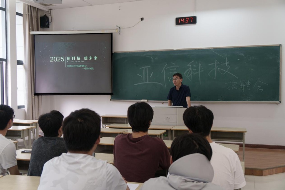 活动现场,公司项目经理胡利进行了企业宣讲,详细介绍了公司的发展概况、面向大三员工的实习岗位、实习生培养计划、技术方向以及未来的职业发展路径。胡利特别强调公司非常重视实习生和后备人才的培养,为实习生配备了生活导师、工作导师和技术导师,提供全方位的指导和支持,帮助同学们快速融入企业环境,提升专业技能,为未来职业发展打下坚实基础。