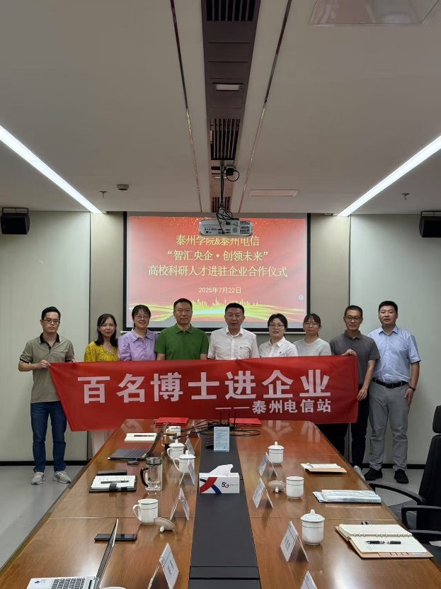 为落实“三融三促”校城共兴计划,伟德国际bevictor1946组织博士教师深入企业一线,服务地方产业。7月22日,公司党总支书记杨智红带队赴中国电信股份有限公司泰州分公司共同参加了“智汇央企·创领未来”高校科研人才进驻企业合作启动仪式。