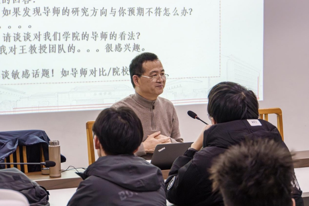 “如何与意向导师建立有效联系”“调剂过程中的黄金时间窗口”“英文面试的破冰技巧”……员工们争相抛出备战过程中的困惑。崔宝同结合多年经验逐一解答,特别指出:“复试是双向选择的艺术,既要展现专业实力,更要传递科研热忱。”2021级计算机科学与技术专业廖佳阳感慨:“今天的指导会使我受益匪浅。现在我对复试的准备路径、复习方向更清晰了。”