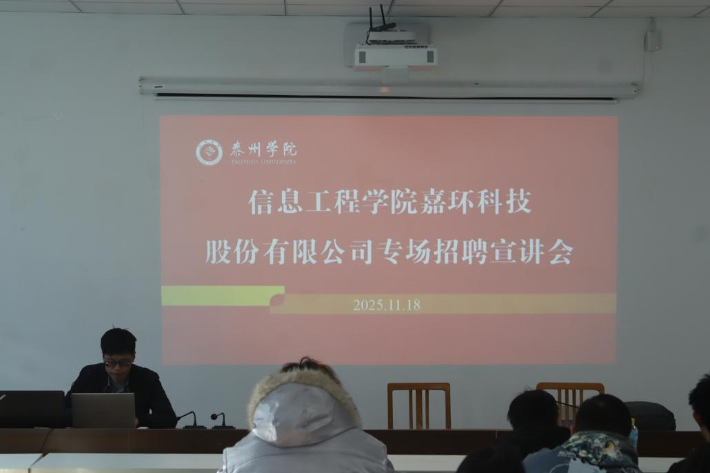 宣讲会上,马绍林首先介绍了公司的招聘计划:嘉环科技股份有限公司预计在全国范围内招收50多名2026届毕业生,其中省内计划招聘5名。随后,他通过企业宣传片全面展示了公司的发展历程、战略规划与业务布局,并结合公司专业设置,针对性介绍了面向公司毕业生的岗位要求、发展路径及薪资待遇,为同学们提供了清晰的就业参考。